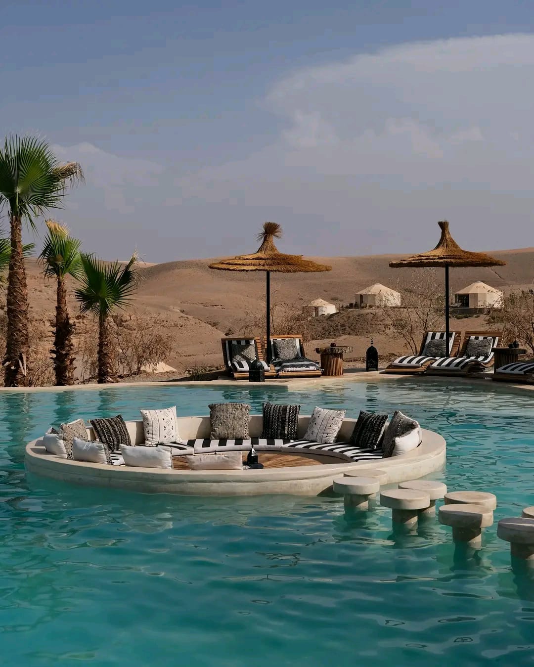 A magical place in the heart of the Agafay desert! Hotel Be Agfay offers an unforgettable experience: a peaceful setting with stunning views of the Atlas Mountains, warm and professional staff, a beautiful pool, and lively evenings with music and shows. The tents and rooms are comfortable, combining authenticity and modernity. It’s the perfect address to relax, enjoy the desert, and live a unique moment.